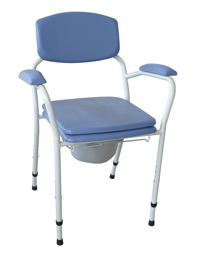 Garniture standard PVC soudé - Finition Epoxy couleur - Hauteur réglable - Poignée de poussée - Accoudoirs fixes - Assise et seau ergonomique - Poids maximum supporté: 100 kg