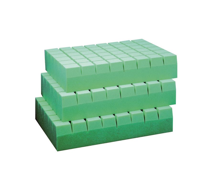 Les matelas de type gaufrier en mousse Haute Résilience constituent, grâce à leurs découpes, une réponse efficace à l’aide à la prévention des escarres sur les zones traditionnellement sensibles - Principes: • une meilleure répartition de pression sur l’ensemble des plots • une réduction des phénomènes de frictions et de cisaillements • un accompagnement des mouvements du patient • une réduction du phénomène de macération